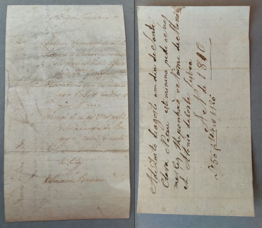 Dimensão e suporte: 1 fl.; papel e vidro.
