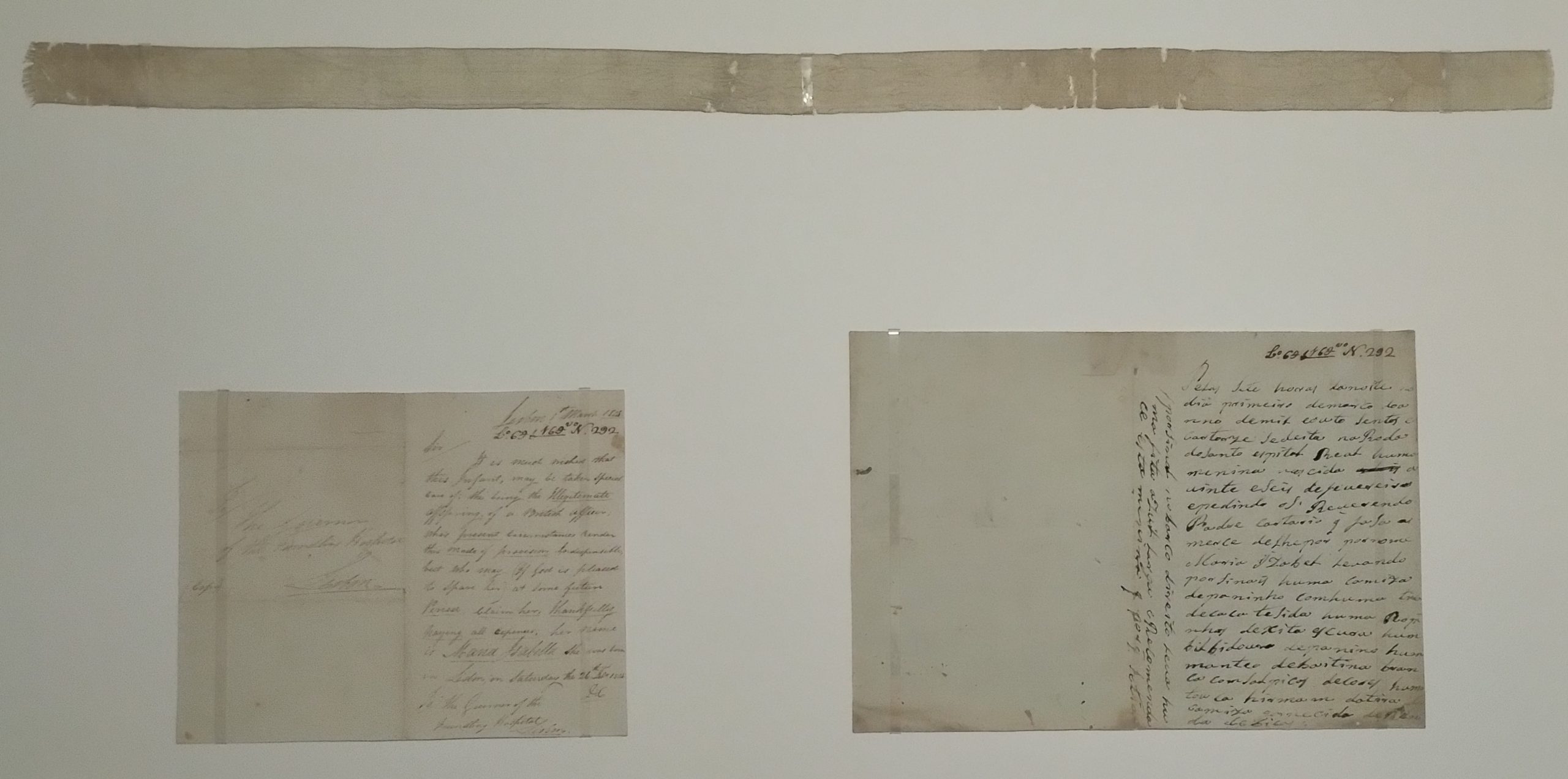 Dimensão e suporte: 1 fl.; papel, tecido e vidro.