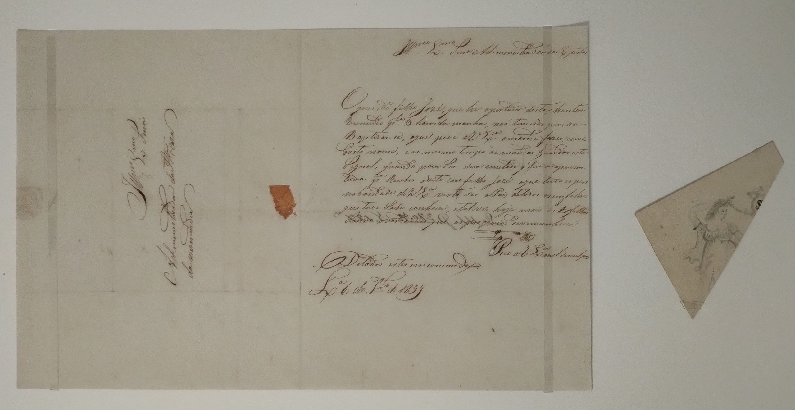 Dimensão e suporte: 1 fl.; papel e tecido.