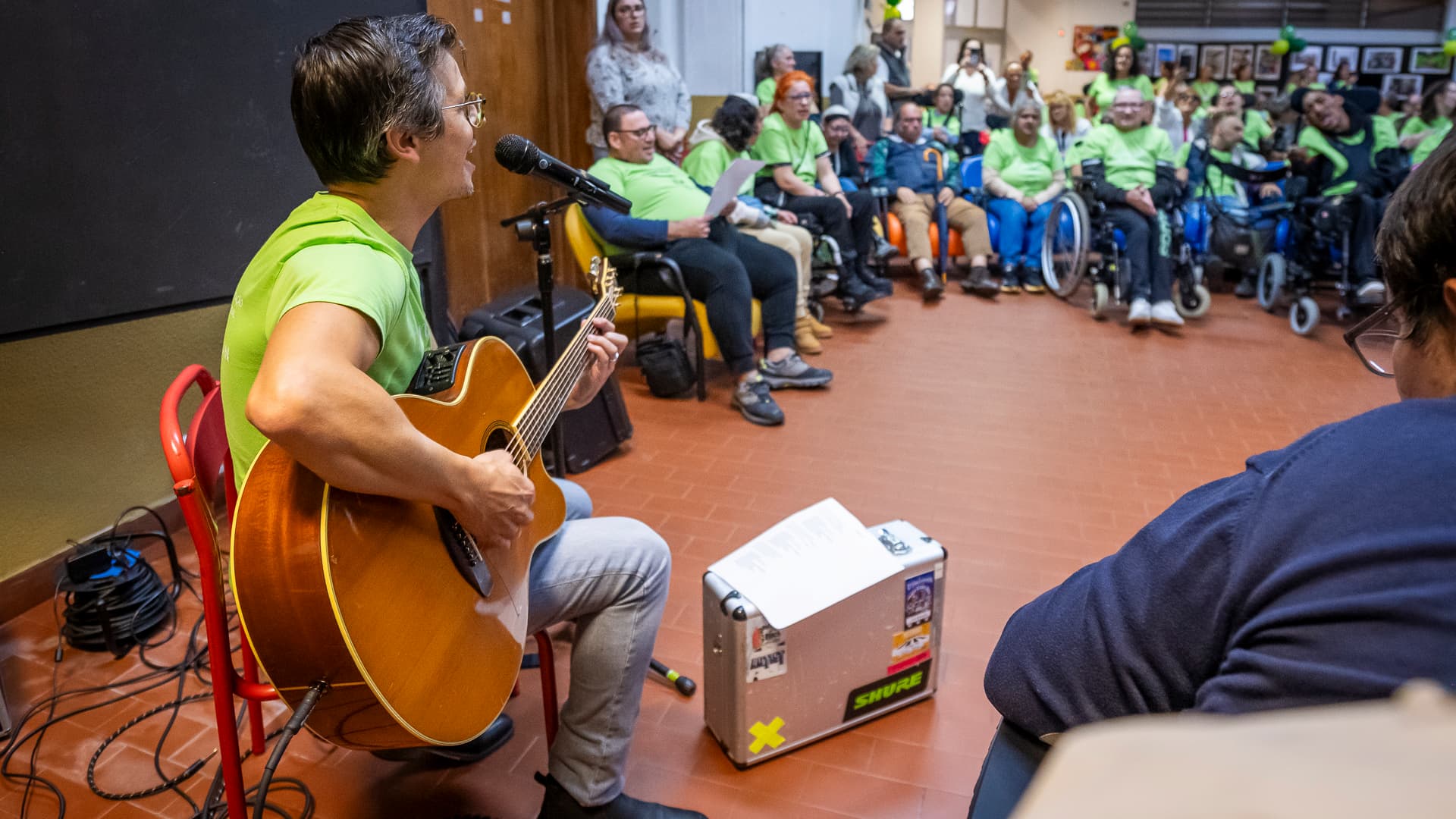 Depois, e já no interior, abrigados da chuva, foi tempo de cantar ao som da App Sound, banda da Associação do Porto de Paralisia Cerebral, que entusiasmou a sala e foi secundada pelo Coro CRPCCG no final da sua atuação. No final da festa foram também entregues ao Centro três novas carrinhas para transporte de utentes desta unidade.