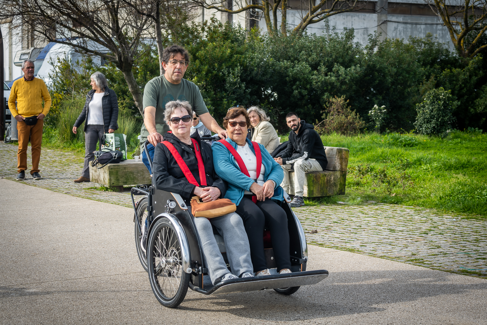 O funcionamento do passeio tem uma particularidade importante: sempre que possível, quem conduz a bicicleta é alguém que já conhece a pessoa transportada. “Nós preferimos que a instituição ou o grupo que traz os utentes traga também alguém para conduzir. Nós explicamos como funciona a bicicleta e essa pessoa vai passear com eles”, explica Luís Reis.