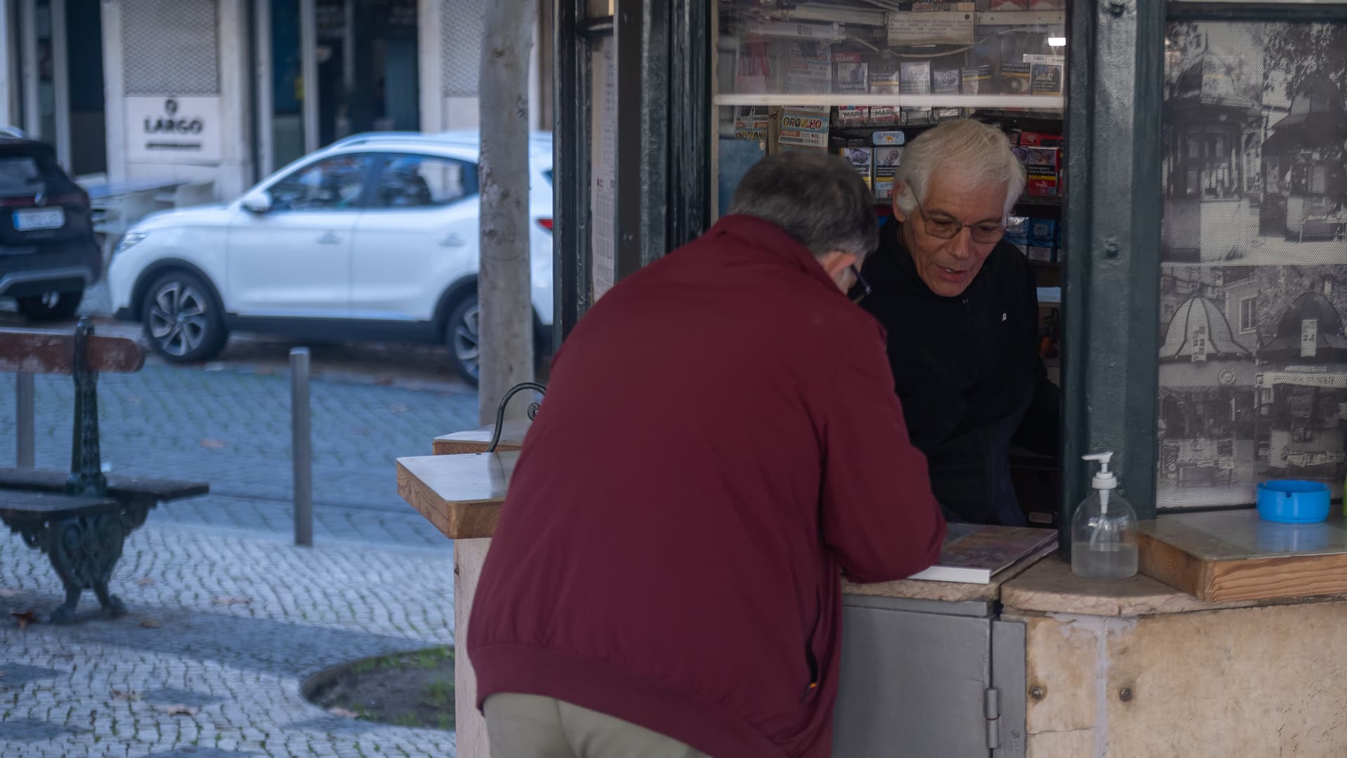 O tema dos expostos não ficará por aqui na escrita de Luís, que já pensa “num conto maior”, uma espécie de auto. Mas quando tiver tempo, porque, entretanto, está já outro cliente a abeirar-se da janela do quiosque no Largo Trindade Coelho e o poeta do quiosque volta a arrumar o montículo de papelinhos.